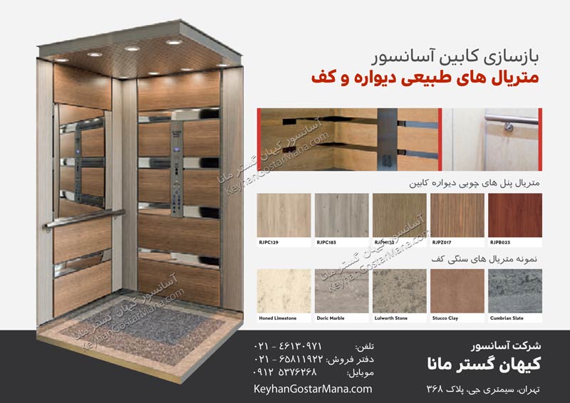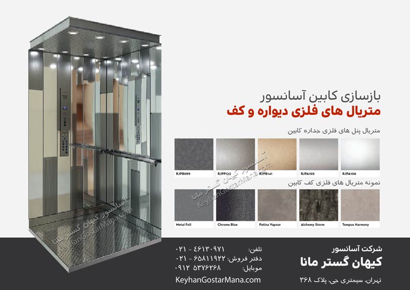و البته گاهی با توجه به صرفه اقتصادی این کار انجام می شود. برای طراحی و ساخت و بازسازی کابین آسانسور باید از مواردی همچون ظرفیت و توان موتور آسانسور آگاهی کامل داشته و با توجه به ترافیک طبقات اقدام به ساخت آن نمود.  در پوشش داخلی کابین آسانسور بیشتر از جنس استیل، ام دی اف و فرمیکا استفاده می شود. در برخی از کابین های آسانسور لوکس از پوشش شیشه ای و آینه استفاده می شود که فضای آن ها را بسیار دلچسب و جذاب می کند. با توجه به قیمت اجناسی که در کابین بکار می رود، هزینه بازسازی کابین آسانسور تعیین می شود.